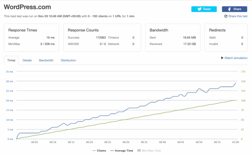 Visit Host โWordPress.com is the best WordPress hosting weโve tested recently. It has outperformed GreenGeeks and Hostinger, which are our previous top picks. In October 2025, we conducted 43,800 tests, and WordPress.com clocked an average speed of 344ms and 100% uptime. It handles our load test with a 16ms response time. All the performance scores are the highest weโve recorded among shared hosts, thanks to their fastest global edge-caching CDN and DNS. Their industry-first โautomated datacenter failoverโ feature replicates your site in real time to its second datacenter. This ensures that if your primary data center goes down, the site will still remain live through its second data center. In this way, they offer a 99.999% uptime guarantee, the highest among any company. If performance is your priority, nothing beats WordPress.com as of now.