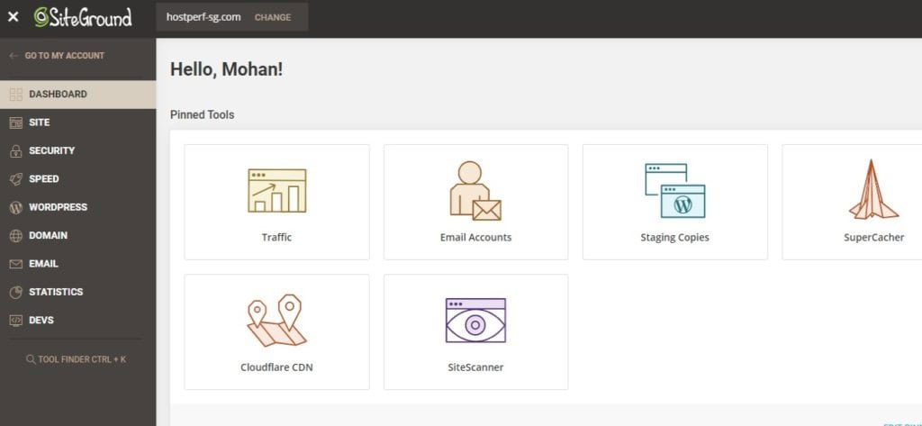 Since SiteGround is a shared hosting, their control panel looks like a modern version of cPanel. It has all the options neatly placed. All the upsells can be managed within this dashboard.