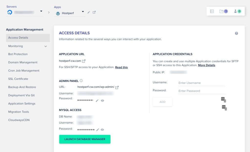 Cloudways control panel is mostly split between server and application settings. The most common features, like PHP selection, are available in the server settings. WordPress-related options, such as SSL and CDN management, are available in the application settings.