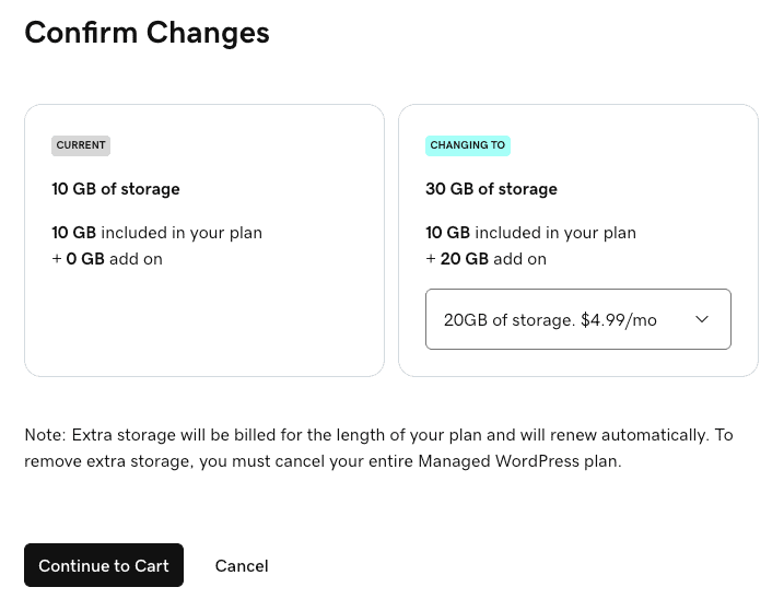- Additional sites can be added to any plan for $4.99/month, and storage can be increased to any plan for $4.99/month. This makes their pricing even more affordable.