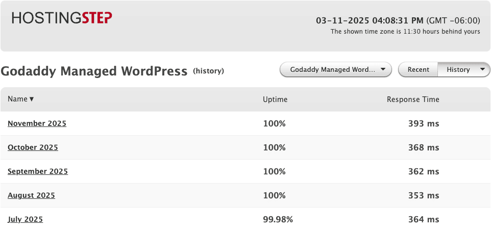 November 4, 2025: Initial version of GoDaddy Managed WordPress hosting review is published. We bought the plan on June 30, 2025 and started monitoring from July 1, 2025. The inital review was published with 4 months data. Next update expected in January 2026.