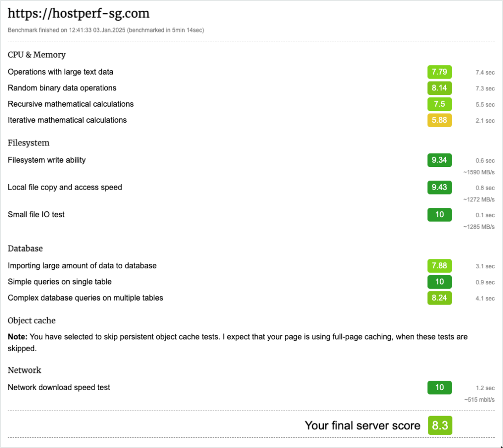 - Server Benchmarking: WPBenchmark plugin (v4.2)